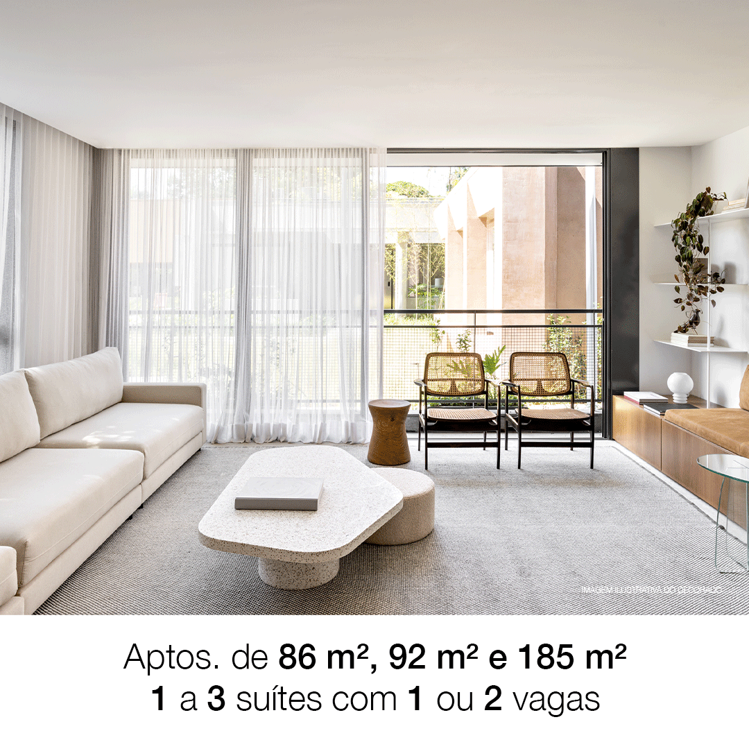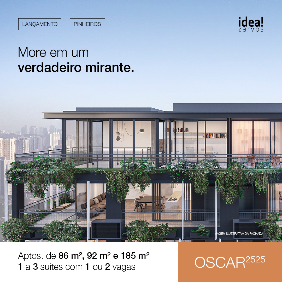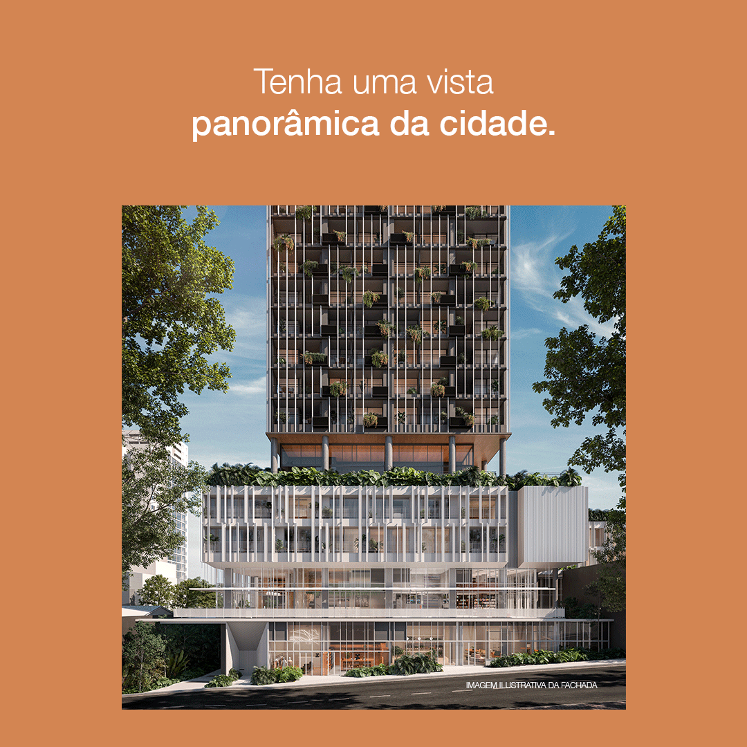 Tudo começa com um empreendimento localizado em um dos mais importantes eixos culturais e gastronômicos da cidade, com uma vista deslumbrante, situado no limite de Pinheiros e a poucos minutos dos Jardins. Foi daí que surgiu a ideia: era preciso destacar esses atributos como foco de um empreendimento onde a topografia esbanjava beleza, mas representava um desafio.